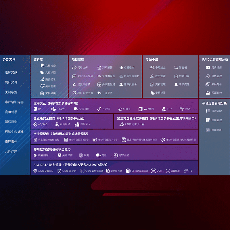 医疗器械产品上市前,,,要熟悉严格与繁复评审标准,,,,整理分析监管机构指导文件中的海量信息。。。企业急需一个智能化解决方案,,,,提升知识管理效率,,,,提高评审通过率,,,,以提升其市场竞争力。。。。